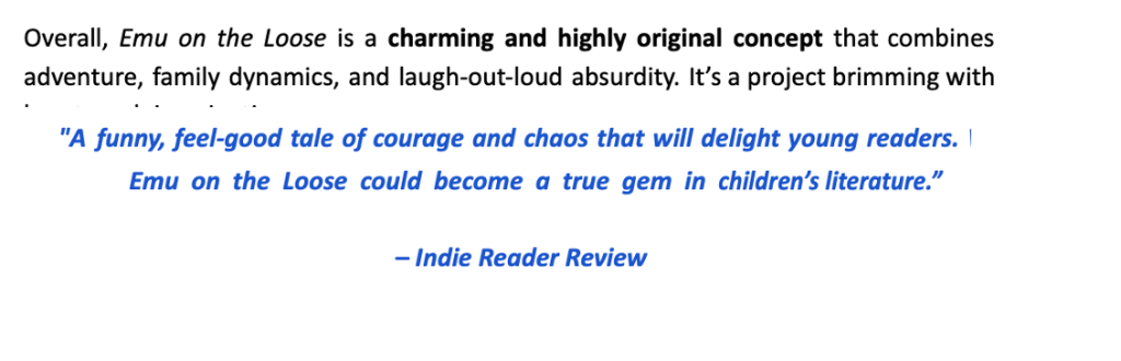 And now, with WGA endorsement, these works carry the potential to leap from page to screen—where their cinematic qualities could captivate viewers worldwide. Picture Julia battling waterfall to save Nikita. Rosie, sword in paw, rallying chipmunks against a fisher cat. An emu charging through a trail, teaching children about freedom. These are not just books, they are moments waiting to become unforgettable film and television experiences.